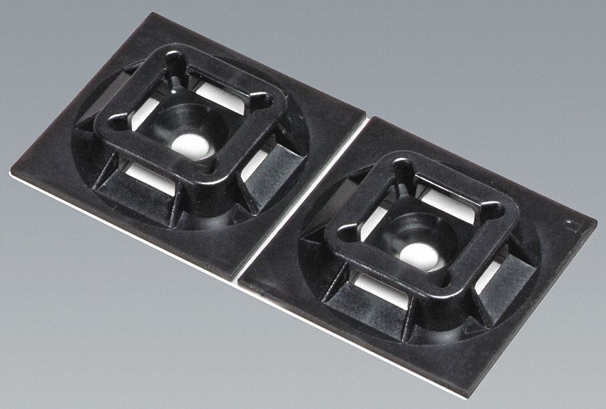 Cable tie mount 4 way mounting method acrylic based adhesive material of construction nylon 6 6 for use with cable ties from 18 to 51 lbs.